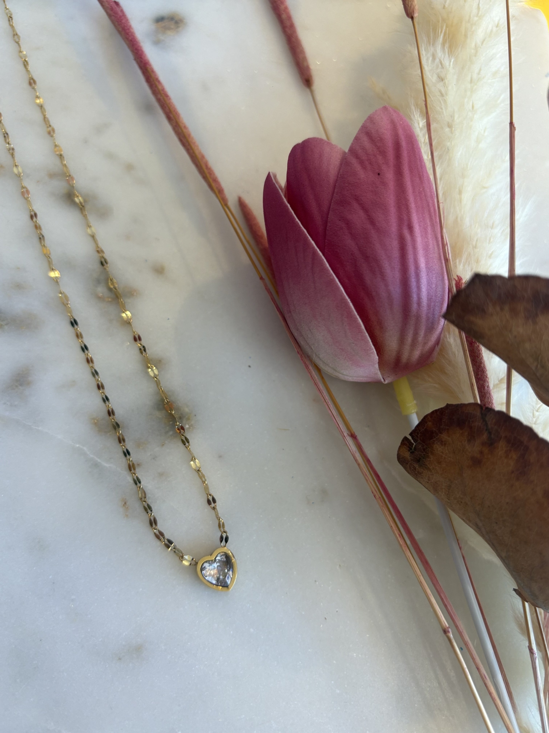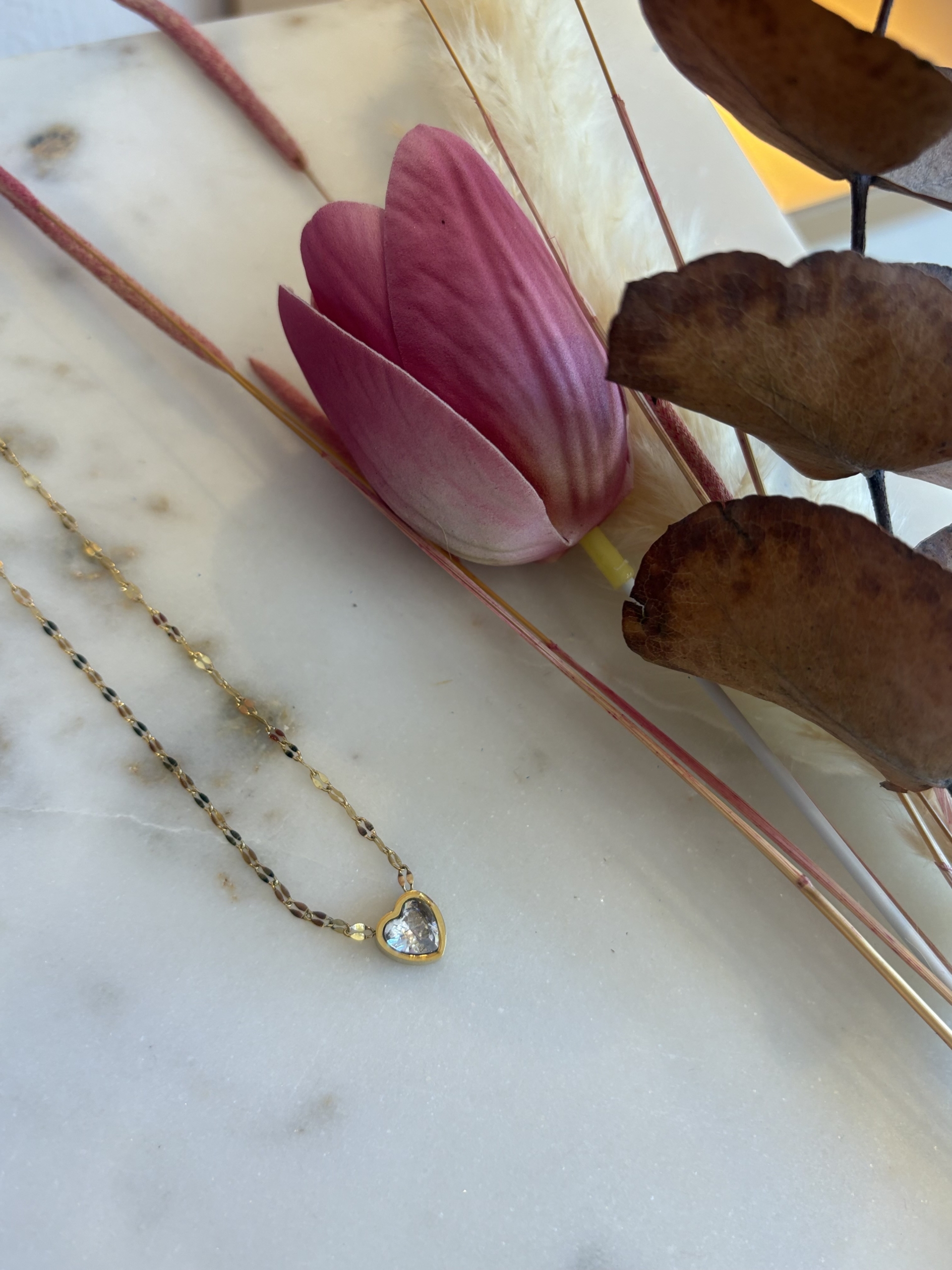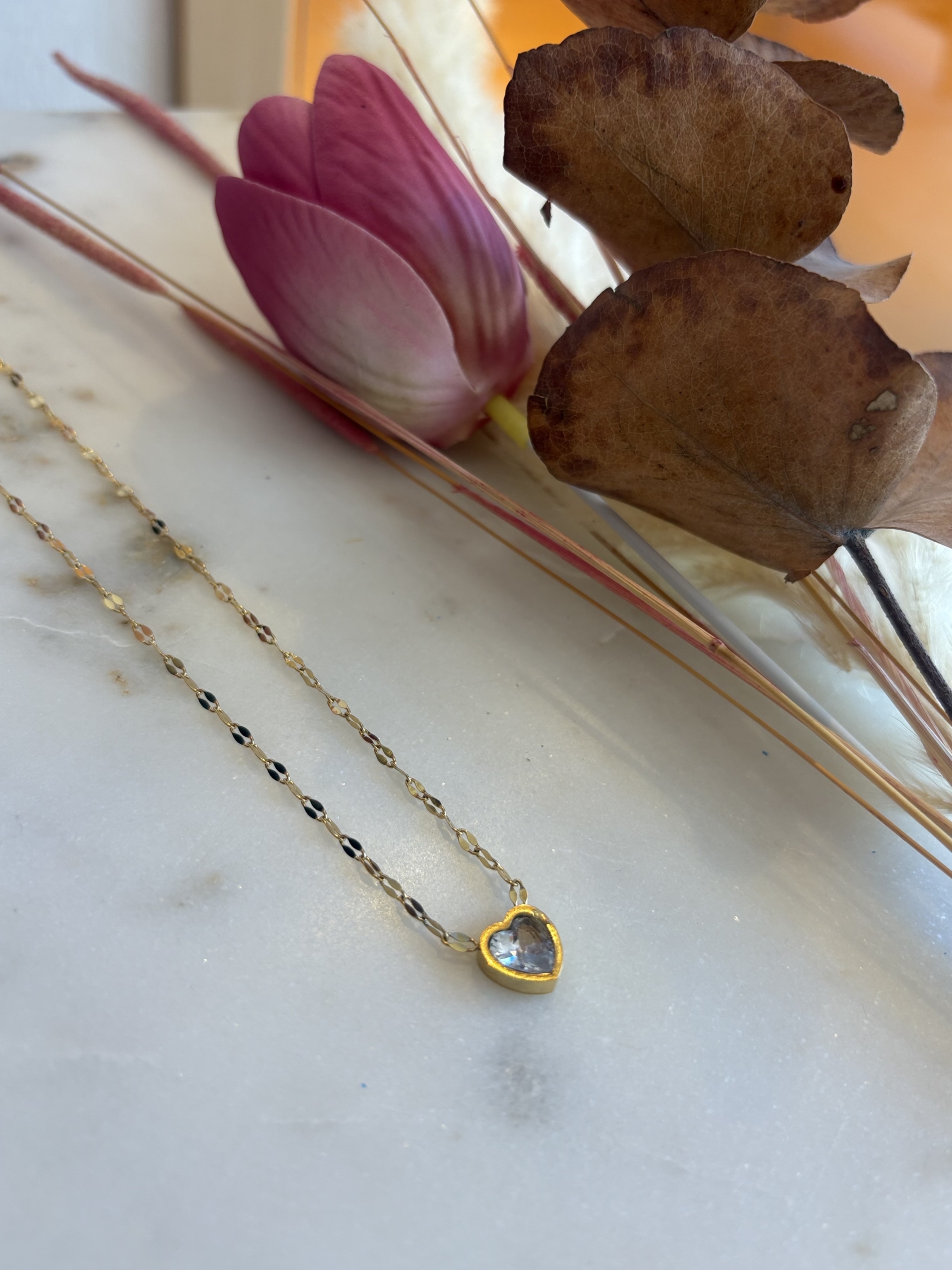 Ατσάλινο κολιέ με ζιργκόν σε σχήμα καρδιάς.
