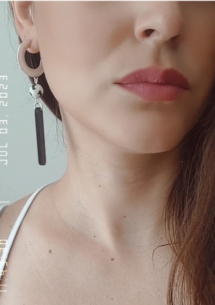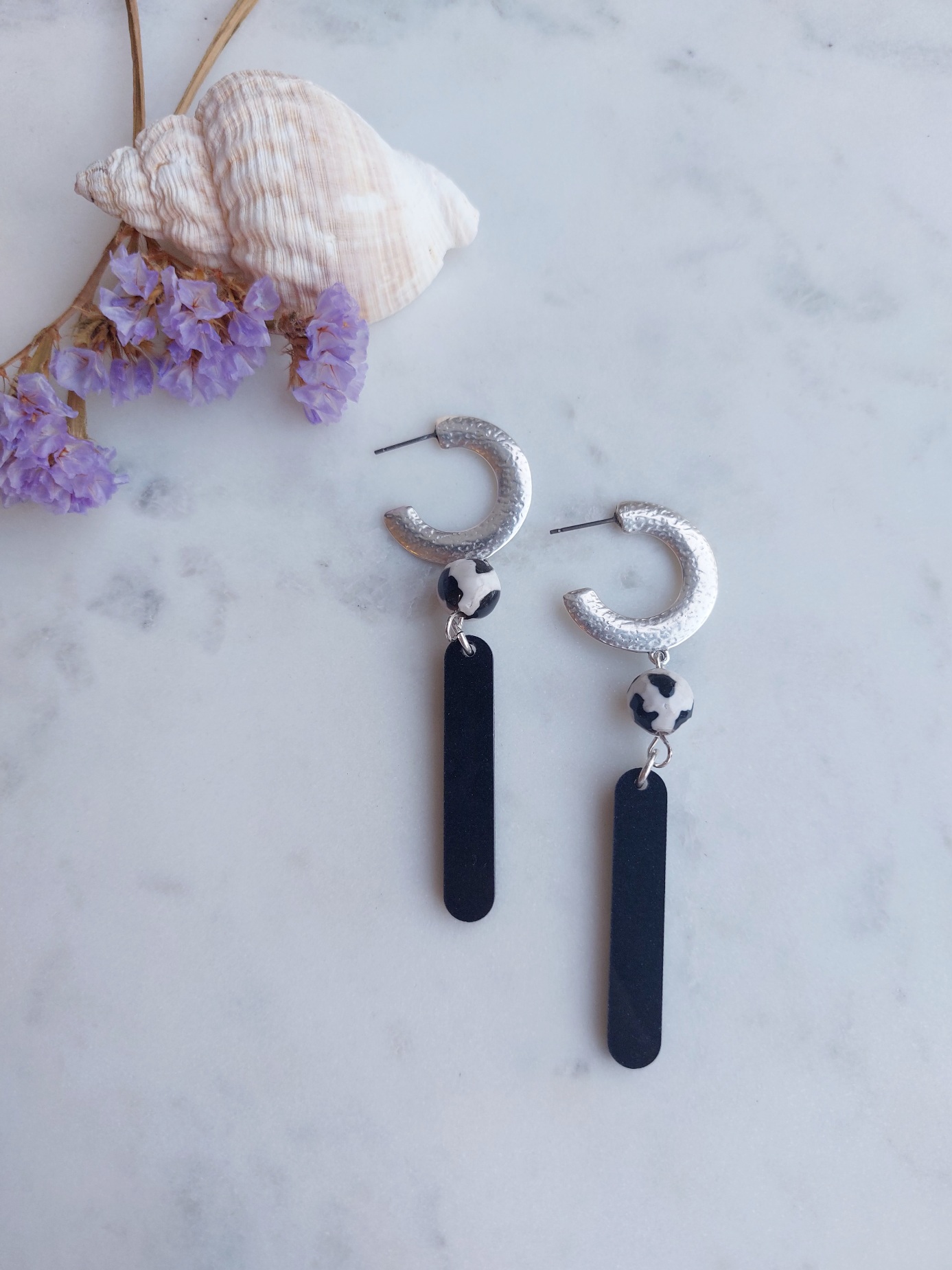 Σφυρήλατοι κρίκοι με χάντρα Θιβετιανού Αχάτη και στοιχείο plexi-acrylic.