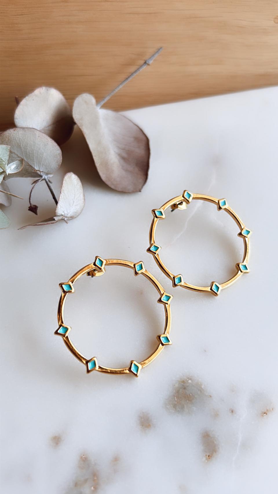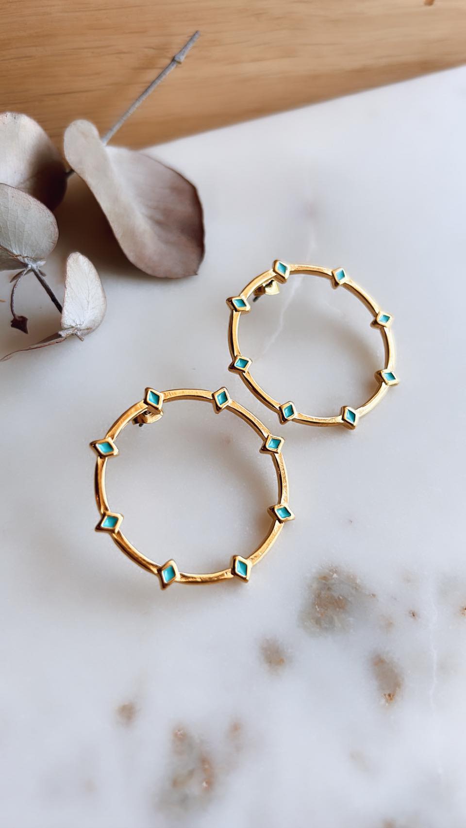 Σκουλαρίκια από ορείχαλκο επιχρυσωμένο με 24Κ, σμάλτο και καρφάκι τιτανίου.