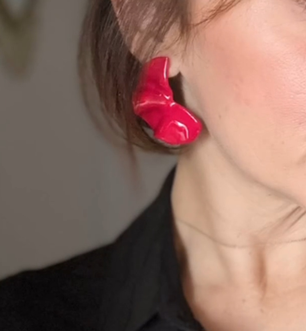 Σκουλαρίκια από πηλό με ατσάλινο κούμπωμα.
