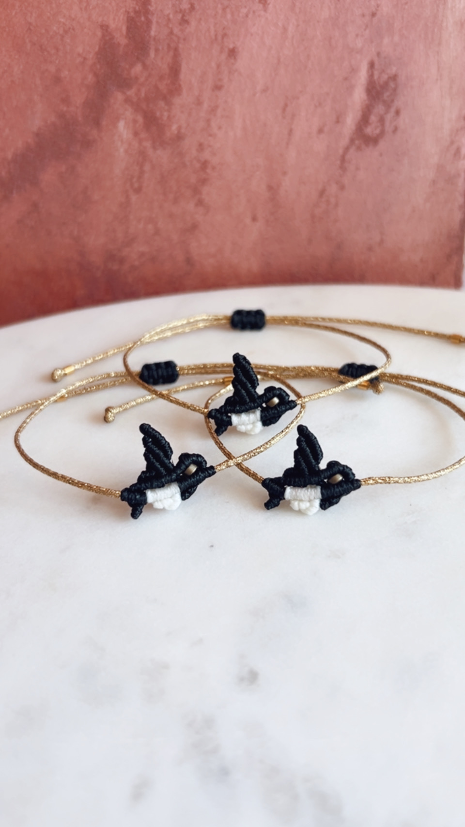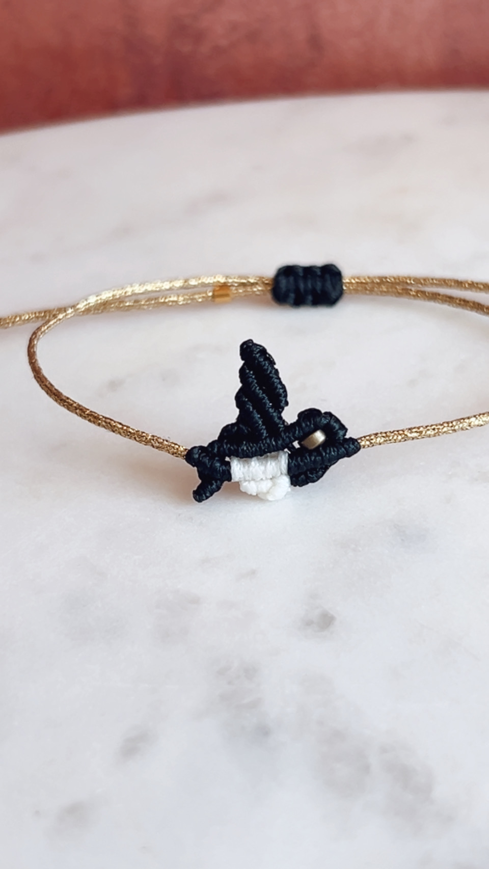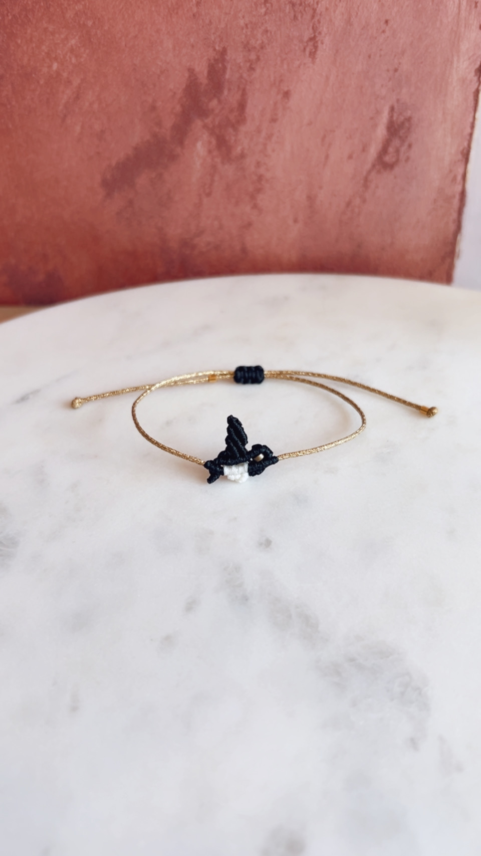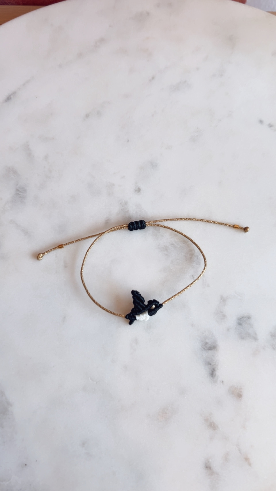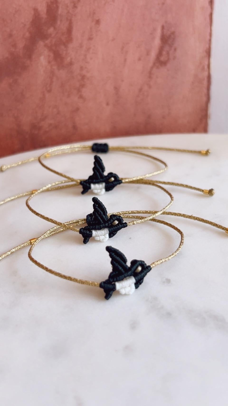 Χελιδόνι φτιαγμένο στο χέρι με την τεχνική του μακραμέ, χρησιμοποιώντας χρυσό κορδόνι που χαρίζει διακριτική λάμψη και κομψότητα. Διαθέτει αυξομειούμενο κούμπωμα, ώστε να προσαρμόζεται εύκολα σε όλους τους καρπούς και να προσφέρει άνετη εφαρμογή. Ένα ιδιαίτερο κόσμημα με συμβολικό χαρακτήρα, ιδανικό για καθημερινές αλλά και πιο ξεχωριστές εμφανίσεις.